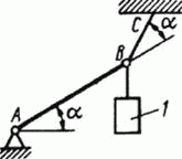 Один конец стержня АВ закреплен шарнирно в точке А. К другому концу В привязан груз 1 весом 50 Н. Стержень удерживается в равновесии веревкой ВС. Определить реакцию веревки ВС, если угол α = 30°.