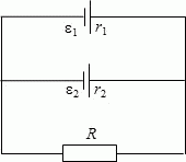 Два источника тока с ЭДС 4 и 6 В и одинаковыми внутренними сопротивлениями 4 Ом включены параллельно с резистором сопротивлением 4 Ом. Определить силы токов, идущих через резистор и элементы.
