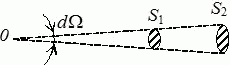 Две малые параллельные заряженные площадки S1 и S2 с одинаковой поверхностной плотностью зарядов σ ограничены одним телесным углом dΩ. Сравните напряженности E1 и E2 полей, создаваемых заряженными площадками S1 и S2 в вершине 0 телесного угла (r >> .