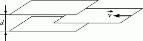 Плоский конденсатор выполнен в виде двух тонких параллельных квадратных пластин с зазором d между ними. Стороны квадратов равны b (b >> d). Зазор между пластинами заполнен жидким диэлектриком с вязкостью η. В пространство между пластинами конденсатора на равном расстоянии от них вдвигают с постоянной скоростью v третью такую же пластину. Определите работу, которую необходимо при этом совершить при преодолении силы вязкого трения. Краевыми эффектами пренебречь.
