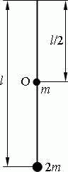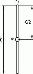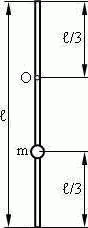 Физический маятник представляет собой тонкий однородный стержень массой m с укрепленным на нем маленьким шариком массой m. Маятник совершает колебания около горизонтальной оси, проходящей через точку О на стержне. Определить период Т гармонических колебаний маятника для случаев, изображенных на рисунке. Длина l стержня равна 1 м. Шарик рассматривать как материальную точку.