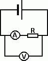 Сопротивление R измеряется вольтметром и амперметром по схеме, показанной на рисунке. Амперметр показывает I = 0,32 А, вольтметр- U = 9,6 В. Сопротивление амперметра r = 0,03 Ом. Определить относительную ошибку, которую делают, вычисляя сопротивление без учета сопротивления амперметра. Произвести тот же расчет при I = 7 А и U = 2,1 В.