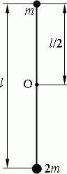 Физический маятник представляет собой тонкий однородный стержень массой m с укрепленными на нем двумя маленькими шариками массами m и 2m. Маятник совершает колебания около горизонтальной оси, проходящей через точку О на стержне. Определить частоту ν гармонических колебаний маятника для случаев, изображенных на рисунке. Длина l стержня равна 1 м. Шарики рассматривать как материальные точки.