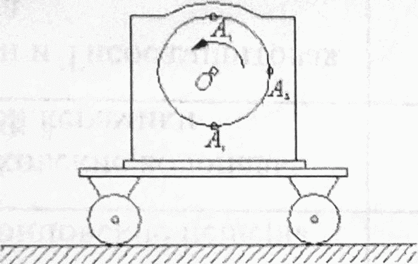 Тележка движется со скоростью v. На ней вращается диск с угловой скоростью ω. Радиус ротора равен r. Определить абсолютные скорости трех точек ротора, указанных на рисунке.