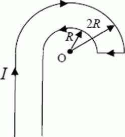 Определить индукцию магнитного поля в точке О, если проводник с током I имеет вид, показанный на рис. Радиусы изогнутых частей проводника считать известными; прямолинейные участки проводника предполагаются очень длинными.