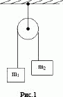 Простейшая машина Атвуда (рис.1), применяемая для изучения равноускоренного движения, представляет собой два груза массами m1 = 0,3 кг и m2 = 0,2 кг, которые подвешены на легкой нити, перекинутой через неподвижный блок. Считая нить и блок невесомыми и пренебрегая трением в оси блока, определите: 1) ускорение грузов; 2) силу натяжения нити.