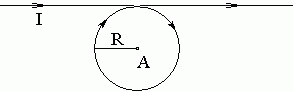 Определить направление и величину индукции магнитного поля в т. А (см. рис.), если ток I = 100 А, R = 0,1 м.