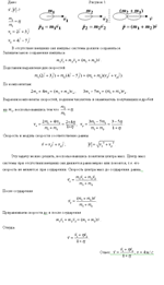 Две одинаковые тележки движутся друг за другом по инерции (без трения) с одной и той же скоростью v0. На задней тележке находится человек массы m. В некоторый момент человек прыгнул в переднюю тележку со скоростью и относительно своей тележки. Имея в виду, что масса каждой тележки равна М, найти скорости, с которыми будут двигаться обе тележки после этого. |
