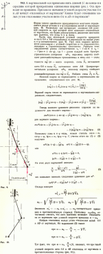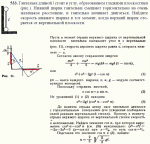 Гантелька длиной l стоит в углу, образованном гладкими плоскостями (рис. ). Нижний шарик гантельки смещают горизонтально на очень маленькое расстояние, и гантелька начинает двигаться. Найдите скорость нижнего шарика в тот момент, когда верхний шарик оторвется от вертикальной плоскости. |