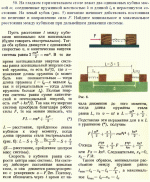 На гладком горизонтальном столе лежат два одинаковых кубика массой m, соединенные пружинкой жесткостью k и длиной l0 в нерастянутом состоянии. На левый кубик (рис.) внезапно начинает действовать постоянная по величине и направлению сила F. Найдите минимальное и максимальное расстояния между кубиками при дальнейшем движении системы. |