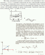 Цепь, показанная на рисунке а, включена в сеть переменного тока с частотой n = 50 Гц. С помощью коммутатора на вход осциллографа подается попеременно то напряжение между точками а и b, то напряжение между точками b и с. На экране осциллографа получаются изображения двух кривых. Рисунок б сделан с фотографии картины на экране осциллографа. Определите индуктивность L контура, если С = 32 мкФ, R = 65 Ом. |