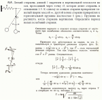 К вертикальной оси привязана нить длиной 2l, на конце и в середине которой прикреплены одинаковые шарики (рис. ). Ось приводят во вращение. При каком значении угловой скороcти участки ОА и АВ начнут отклоняться от вертикали? Каким будет отношение малых углов отклонения участков нити ОА и АВ от вертикали? |
