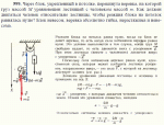 Через блок, укрепленный в потолке, перекинута веревка, на которой груз массой М уравновешен лестницей с человеком массой m. Как должен двигаться человек относительно лестницы, чтобы реакция блока на потолок равнялась нулю? Блок невесом, веревка абсолютно гибка, нерастяжима и невесома. |