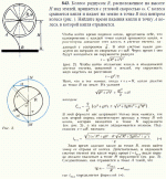 Колесо радиусом R, расположенное на высоте Н над землей, вращается с угловой скоростью w. С колеса срывается капля и падает на землю в точке В под центром колеса (рис. ). Найдите время падения капли и точку А колеса, в которой капля отрывается. |