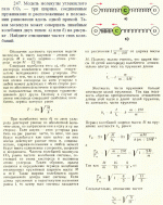 Модель молекулы углекислого газа СО2 — три шарика, соединенные пружинками и расположенные в положении равновесия вдоль одной прямой. Такая молекула может совершать линейные колебания двух типов: а) или б) на рисунке . Найдите отношение частот этих колебаний. |