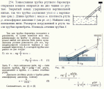 Тонкостенная трубка ртутного барометра открытым концом опирается на дно чашки со ртутью. Закрытый конец удерживается вертикальной нитью, так что трубка составляет угол a с вертикалью (рис. ). Длина трубки l, масса m, плотность ртуть r, атмосферное давление h (мм рт. ст.). Найдите силу натяжения нити. Размером погруженной в ртуть части трубки пренебречь. Площадь сечения трубки S. |