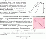 Две горизонтальные полуплоскости, расположенные на высоте h одна над другой, плавно переходят друг в друга, как показано на рисунке . По верхней полуплоскости под углом a к направлению на спуск движется со скоростью u небольшой брусок. С какой скоростью он будет двигаться по нижней полуплоскости? Считать, что брусок не подпрыгивает, m. е. движется, не отрываясь от поверхности спуска. Трением пренебречь. |