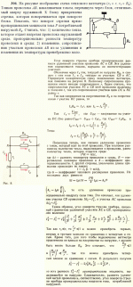 На рисунке изображена схема теплового ваттметра (r1 « r, r1 « Rн). Тонкая проволока АВ, накаливаемая током, перекинута через блок, оттягиваемый кверху пружинкой. К блоку прикреплена стрелка, которая поворачивается при повороте блока. Показать, что поворот стрелки прямо пропорционален мощности тока P потребляемой нагрузкой Rн. Считать, что: 1) количество тепла, которое отдает нагретая проволока окружающей среде, пропорционально разности температур проволоки и среды; 2) изменение, сопротивления уч |