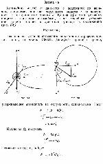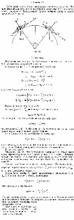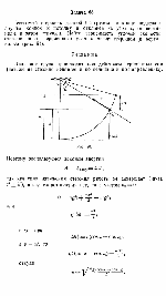 Автомобиль, движущийся по окружности, равномерно увеличил свою скорость от i>o до v, сделав при этом один оборот. Считая силы движущего и "заворачивающего" трения одинаковыми и превышающими к концу оборота силу тормозящего трения в п раз, найти это п. Какой угол составила при скорости и результирующая сила со скоростью (рис.)? |