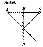 В плоском зеркале MN (рис. 391) глаз видит мнимое изображение 5" светящейся точки S. Построением определите положение светящейся точки и ход одного-двух лучей, образующих ее изображение в глазу.