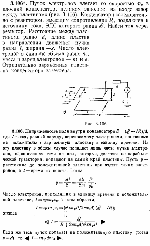 Пучок электронов влетает со скоростью v0 в плоский конденсатор, целиком заполняя на входе зазор между пластинами (рис.). Конденсатор последовательно с резистором, имеющим сопротивление R, подключен к источнику тока, ЭДС которого равна E. Найти ток через резистор. Расстояние между пластинами равно d, длина пластин равна l, ширина —х. Число электронов в единице объема равно nv, масса и заряд электронов — m и е. Отрицательно заряженная пластина на конденсатора заземлена. |