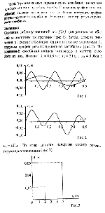 На рис. 61 дан спектр результирующего колебания. Пользуясь данными этого рисунка, написать уравнения колебаний, из которых составлено результирующее колебание. Начертить график этих колебаний. Принять, что в момент t = 0 разность фаз между этими колебаниями ?2—?1 = 0. Начертить график результирующего колебания. |