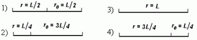 Световой луч проходит расстояние L: часть этого пути r0 — в вакууме (n = 1), другую часть пути r — в однородной среде с показателем преломления n = 1,5. В каком из приведенных ниже случаев оптическая длина пути наименьшая?