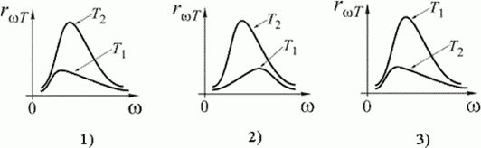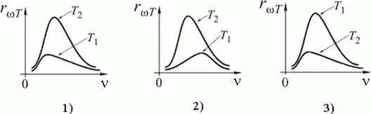 Распределение энергии в спектре излучения абсолютно черного тела в зависимости от частоты ν для температур Т1 и T2 (Т2 > T1) верно представлено на рисунке под номером ...