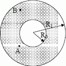 Шар радиусом R1 = 0,3 м с полостью радиусом R0 = 0,1 м, центр которой совпадает с центром шара, заполнен диэлектриком с диэлектрической проницаемостью ε1 и объемной плотностью заряда ρ. Шар окружен сферическим слоем диэлектрика радиусом R2 = 0,6 м, с диэлектрической проницаемостью ε2 (рис. 35). Определить разность потенциалов точек A и B, расположенных на расстояниях rA и rB от центра сферы.