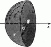 Половина шара радиуса R = 10 см несет равномерно распределенный по объему заряд с объемной плотностью ρ = 6 мкКл/м3. Определить в точке О, совпадающей с центром шара, напряженность Е электрического поля.