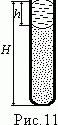 Запаянная с одной стороны вертикально размещена трубка, длина которой H = 1 м, до предела заполнена воздухом и ртутью (рис 11). Длина столбика ртути h = 38 см. До какой температуры Т надо нагреть воздух в трубке, чтобы вся ртуть вылилась? Температура атмосферы t = 17°С, давление р = 101,3 кПа. ![]()